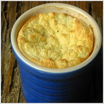 Leve ao forno por 1 hora ou até que o suflê cresça e fique com a superfície dourada. Retire do forno e sirva imediatamente.